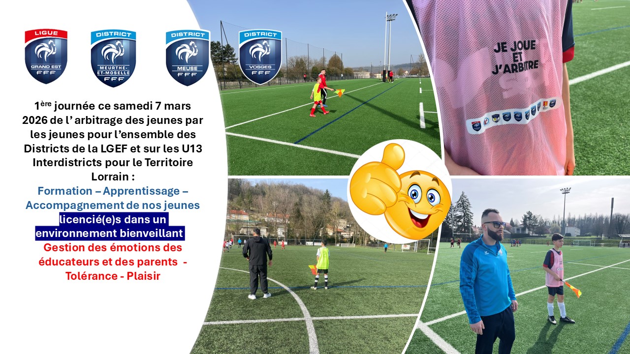 1ère réussie de l'Arbitrage des jeunes par les jeunes ce samedi 7 mars 2026. Mise en place sur les U13 Interdistricts Territoire Lorrain pour la phase de printemps 2026. Depuis...