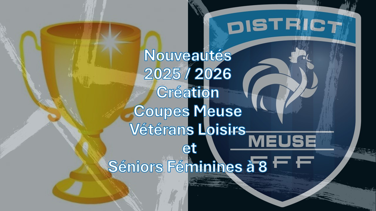Nouveautés 2025 / 2026 Création de 2 nouvelles compétitions avec les coupes Meuse Vétérans / Loisirs et Séniors Féminines à 8. Les clubs sont invités aux réunions de présentation du...