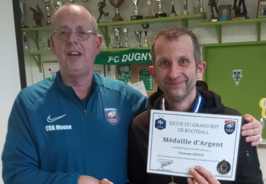 Christophe LEPAGE a reçu récemment sa médaille d'argent de l'arbitrage des mains de Christian HOFFMANN, notre président de la CDA Meuse. Christophe a débuté l'arbitrage en 2005 à l'Entente...